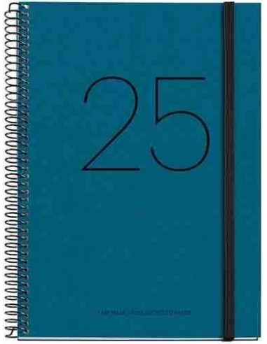 Agenda Día Página Espiral reciclada cartón Plus con goma Recycled 155 x 213 azul 2025
