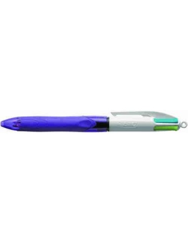 Bolígrafo con punta retráctil por botones laterales y grip de caucho en la empuñadura para una escritura más cómoda. 4 colores de tinta. Diámetro de bola: 1.0 mm. Trazo medio: 0.4 mm.