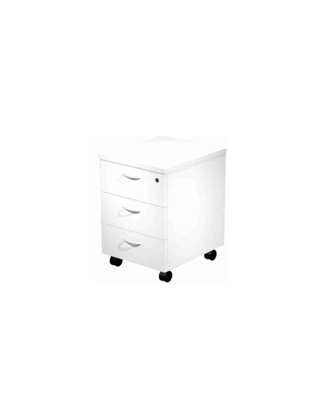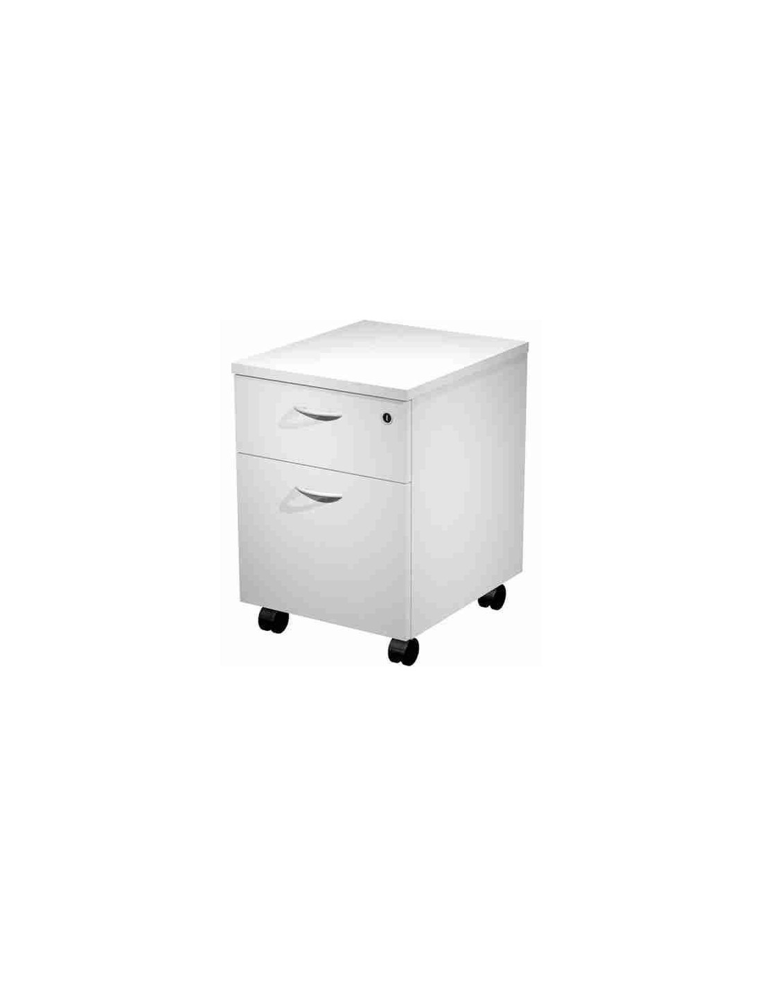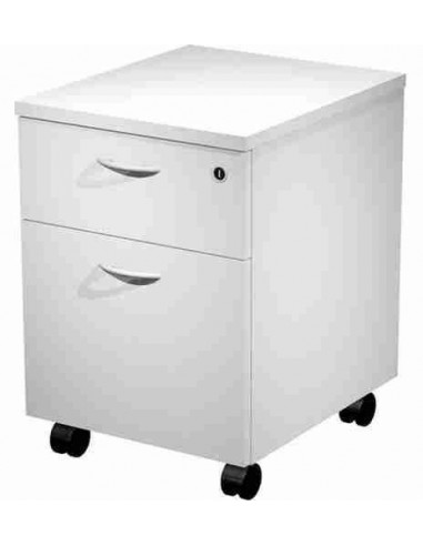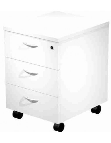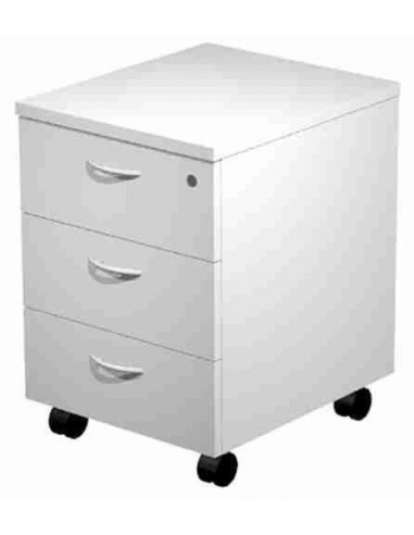 Cajonera de melamina con guías metálicas. Cierre con cerradura en cajón superior. Cajón de carpetas colgantes apto para carpetas A4. Compatible con gama de mobiliario Presto y Venere.