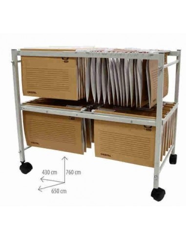 Carro para carpetas con formatos A4, folio y folio prolongado. Reforzado para una máxima estabilidad. 2 pisos: optimización del espacio. Ruedas giratorias para mejor desplazamiento. Parte inferior extraíble.