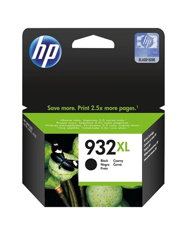 El cartucho de tinta HP 932 negro imprime con calidad profesional página tras página. Imprima más con este cartucho de gran capacidad, consiga texto negro con calidad láser en sus documentos y recicle con facilidad sus cartuchos. Duración aproximada: 1000 páginas.
