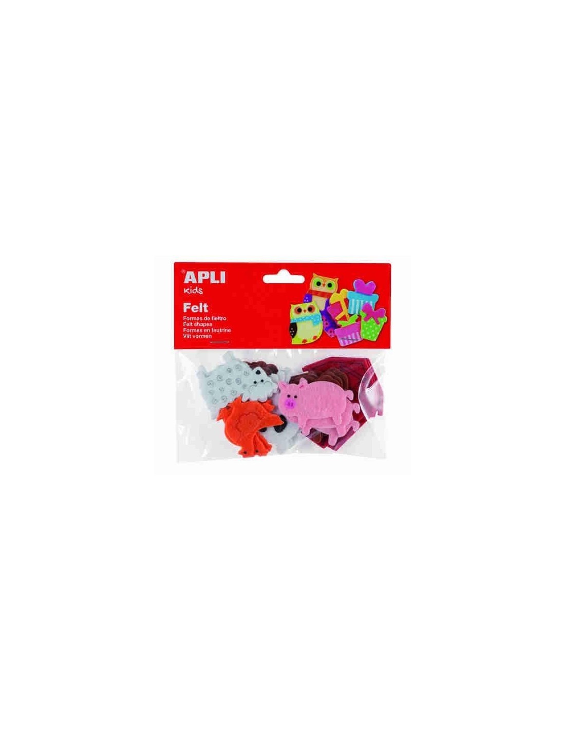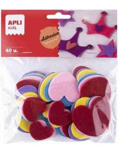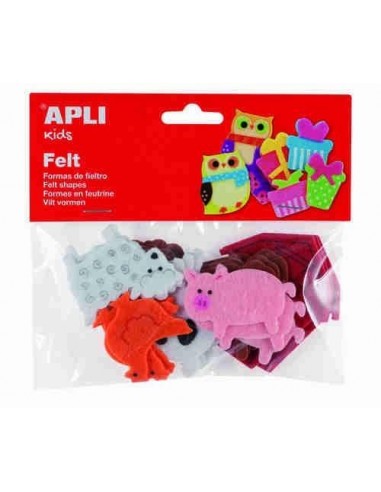 Figuras de fieltro en bolsa. En tamaños y colores surtidos.