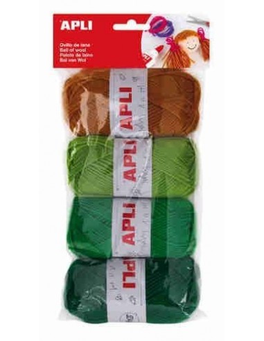Ovillos de lana tonos verde 4 unidades