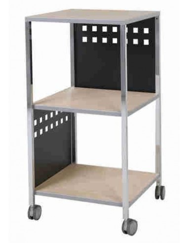 Realizado en melamina de 19 mm y en acero pintado. Apto para servicios de catering, audiovisuales, almacenamiento, etc. Sus paneles laterales aumentan la privacidad deseada. Ruedas de altas prestaciones. Fácil montaje.