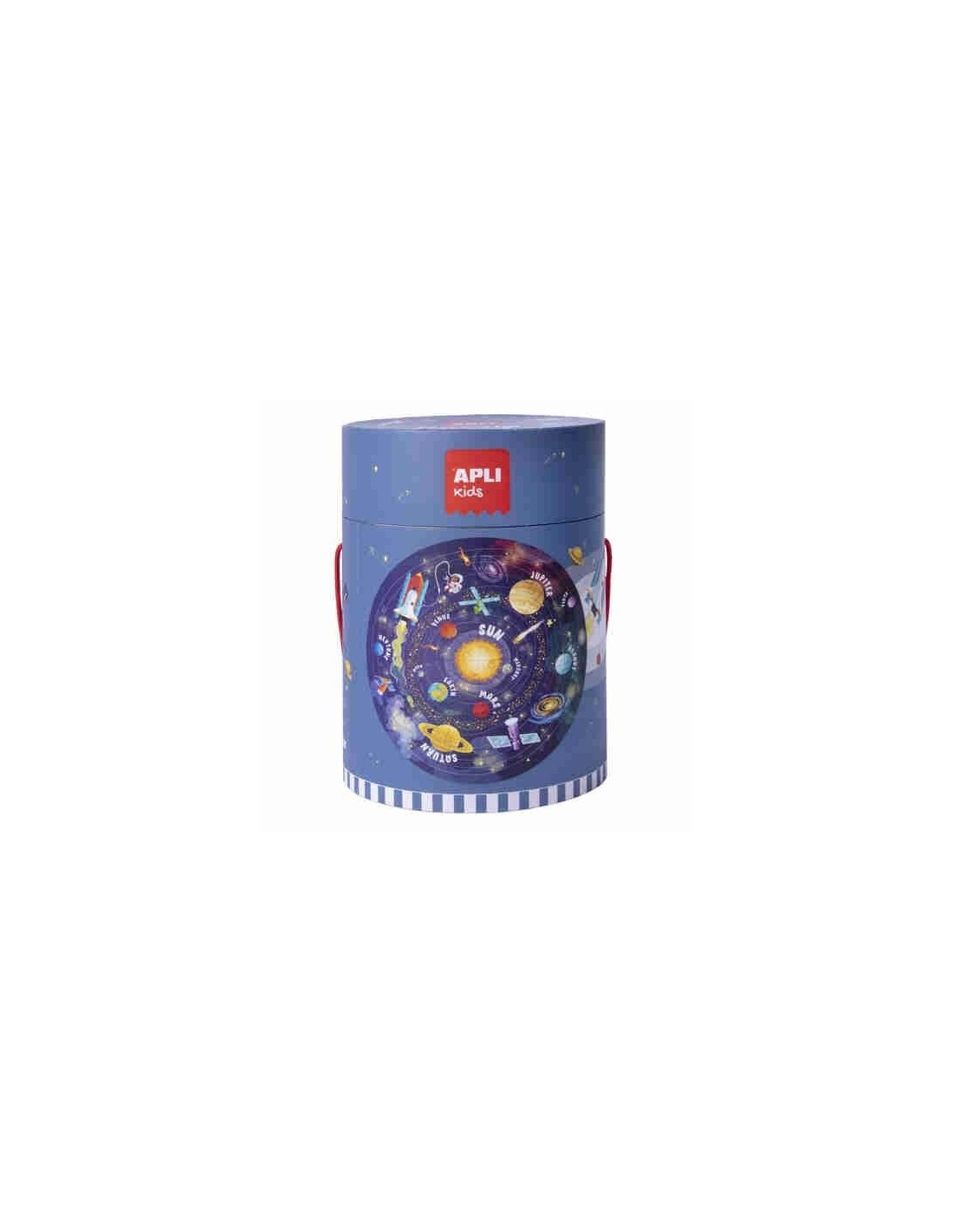 Puzle circular con temática del Sistema Solar. Incluye 48 piezas de diferentes tamaños. Presentación en caja cilíndrica de cartón con asa de 205 x Ø 150 mm. Tamaño del puzle: Ø50 cm. Contiene un póster a tamaño real para facilitar el montaje. Una vez el puzle esté montado, los niños podrán descubrir los secretos que esconde nuestro maravilloso Sistema Solar. Puzle que ayuda a los niños a familiarizarse con el sistema solar en un entorno de juego. Diseño exclusivo APLI Kids: infantil, colorido, claro y simple. Fácil manejo para los más pequeños: piezas resistentes, seguras y fáciles de manejar. Cartón de 2 mm de grosor con acabado mate e indiana en el dorso. Los puzles son el juego ideal para los niños ya que, mientras se divierten jugando, les ayudan a mejorar y desarrollar multitud de capacidades y habilidades: mejoran su concentración, la observación, la memoria y la resolución de problemas; y desarrollan la percepción espacial, la psicomotricidad fina, el reconocimiento de formas, la coordinación mano-ojo y las habilidades matemáticas. Además, los puzles les ayudan a mejorar su autoestima y motivación gracias al hecho de terminar un juego con éxito. Recomendado para niños a partir de 5 años.