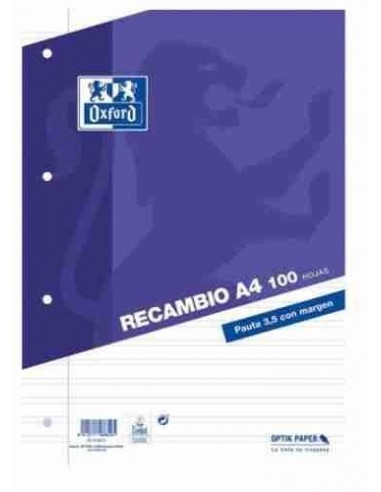 Recambios en papel de 90 gramos. Optik paper. Diferentes rayados dependiendo del color. Tamaño A4.